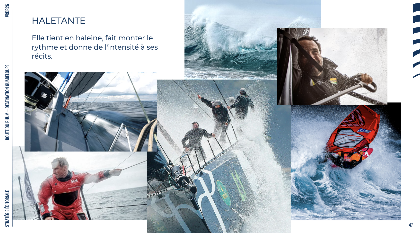 Bérangère Cahéric, responsable du pôle digital explique : “À partir du travail de positionnement, nous avons défini une stratégie et une ligne éditoriales fortes, et construit un séquençage narratif qui raconte la Route du Rhum comme un récit au long cours.